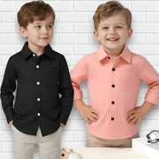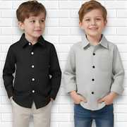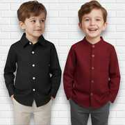 Boys Regular Fit Solid Cut Away Collar Casual Shirt (Pack of 2)