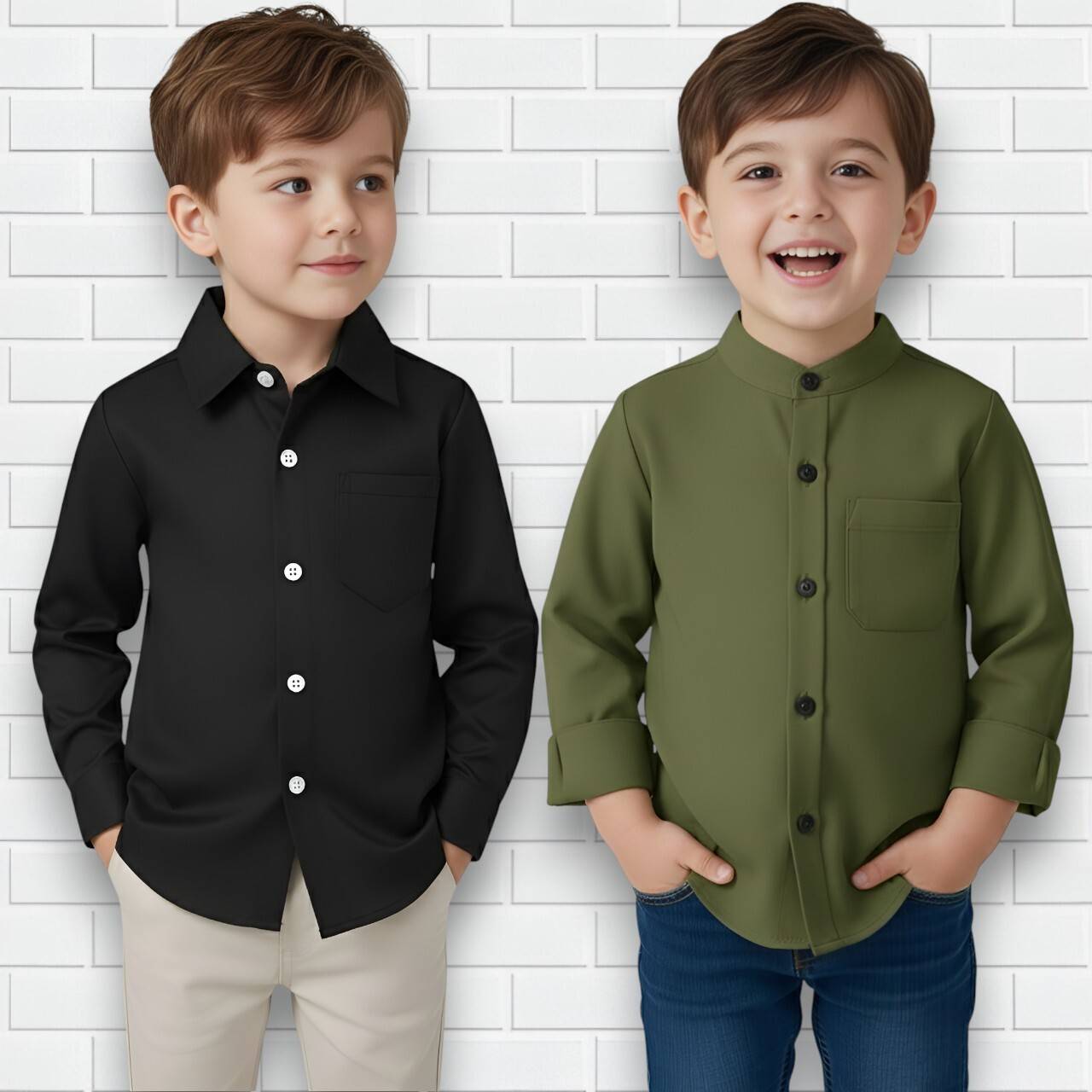 ANVARI Boys Solid Casual Multicolor Shirt (Pack of 2)
