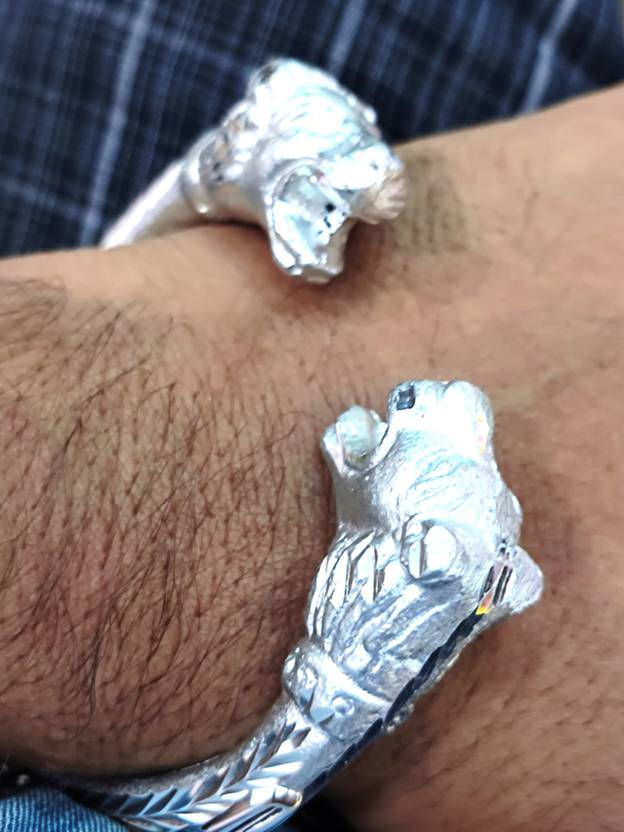 Tiger Face Alloy Silver Light Weight kada Adjustable In Size | Kada for men