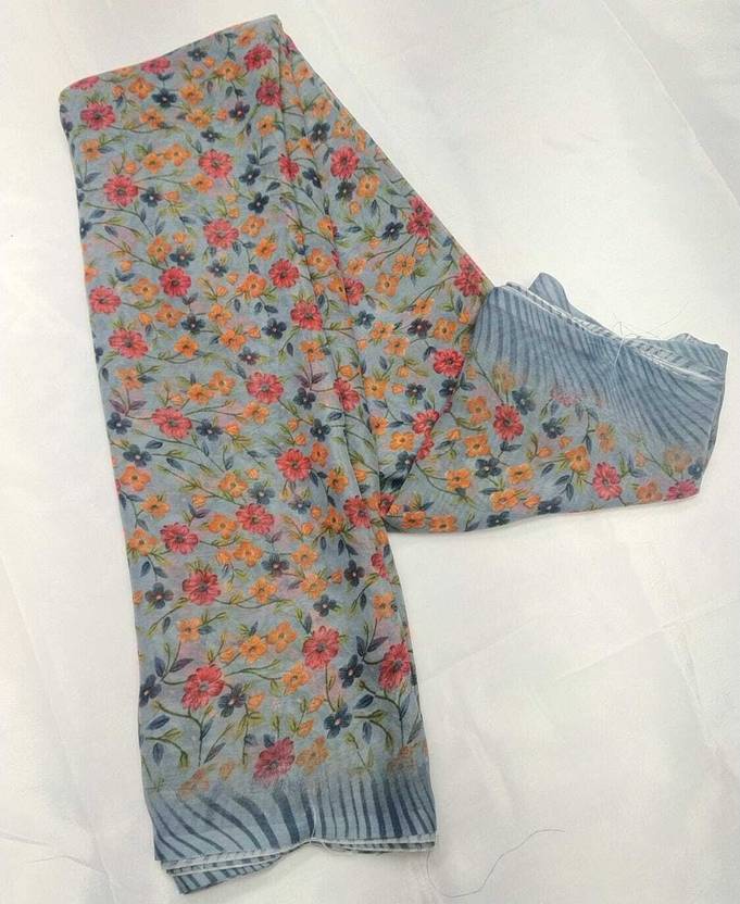 Any Designer Printed Daily Wear Georgette Saree (Grey)