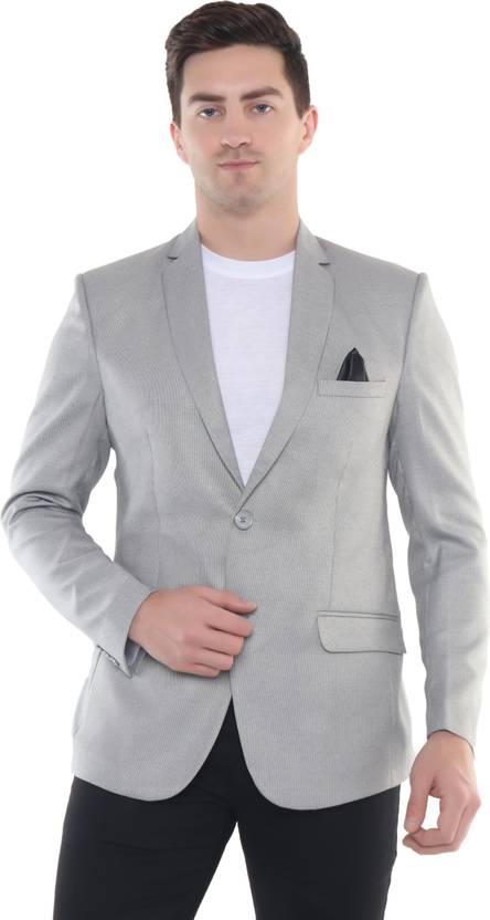 DKGF FASHIONΒ Men Self Design Single Breasted Party BlazerΒ Β (Grey)