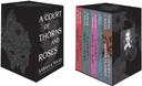 All five of the Court of Thorns and Roses hardcovers with the new series look in a luxe box set, perfect for the holiday season. Passionate, violent, sexy and daring ... A true page-turner - USA TODAY on A Court of Thorns and RosesFeyre is a huntress. The skin of a wolf would bring enough gold to feed her sisters for a month. But the life of a magical creature comes at a steep price, and Feyre has just killed the wrong wolf ...Follow Feyre's journey into the dangerous, alluring world of the Fae, where she will lose her heart, face her demons and learn what she is truly capable of.The world expands in A Court of Silver Flames with the story of Feyre's fiery sister, Nesta. This stunning five-book box set of the #1 New York Times bestselling series by Sarah J. Maas includes A Court of Thorns and Roses, A Court of Mist and Fury, A Court of Wings and Ruin, A Court of Frost and Starlight and A Court of Silver Flames.