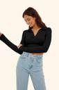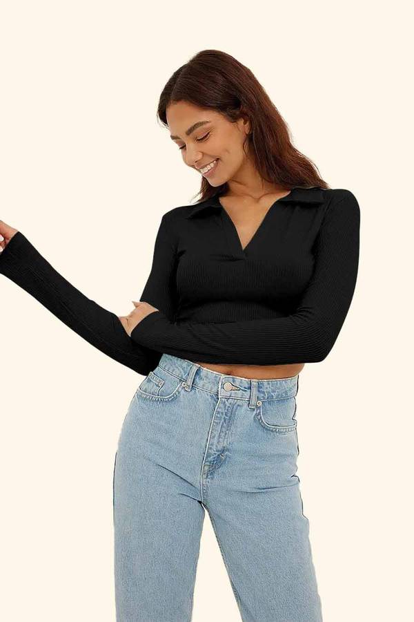 Aoosh Solid Black V Neck Full Sleeve Tops