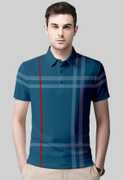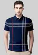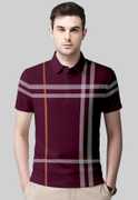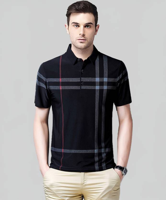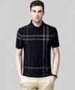 AOOSH Checkered Men Polo Neck Black T-Shirt