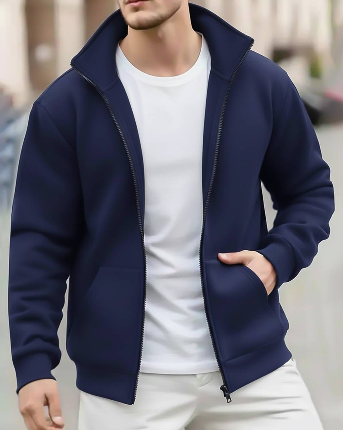 Men's Solid Blue Full Sleeve Turtle Neck Jacket