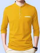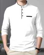 AOOSH Solid Men Mandarin Collar Blue T-Shirt