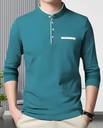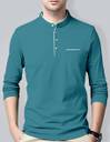 AOOSH Solid Men Mandarin Collar Blue T-Shirt
