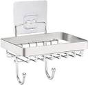 AORDEY Soap Dish Holder for Bathroom with Sponge Hook Bar Soap Holder (Silver)
