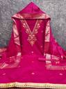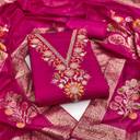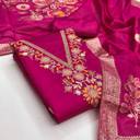 Unstitched dress material set for women including top, bottom, and optional dupatta (as applicable), made from specified fabrics with exact fabric lengths mentioned; suitable for casual or festive wear, hand wash care, net quantity 1 set, country of origin India, model/style code provided, color as shown, and note that stitching is not included.