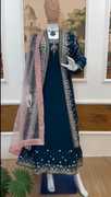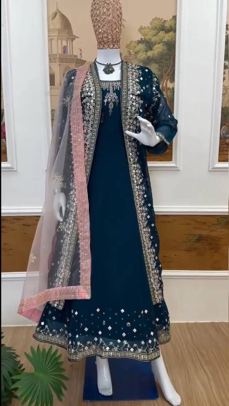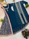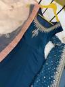 Embroidered Georgette Stitched Flared/A-line Gown (Blue)