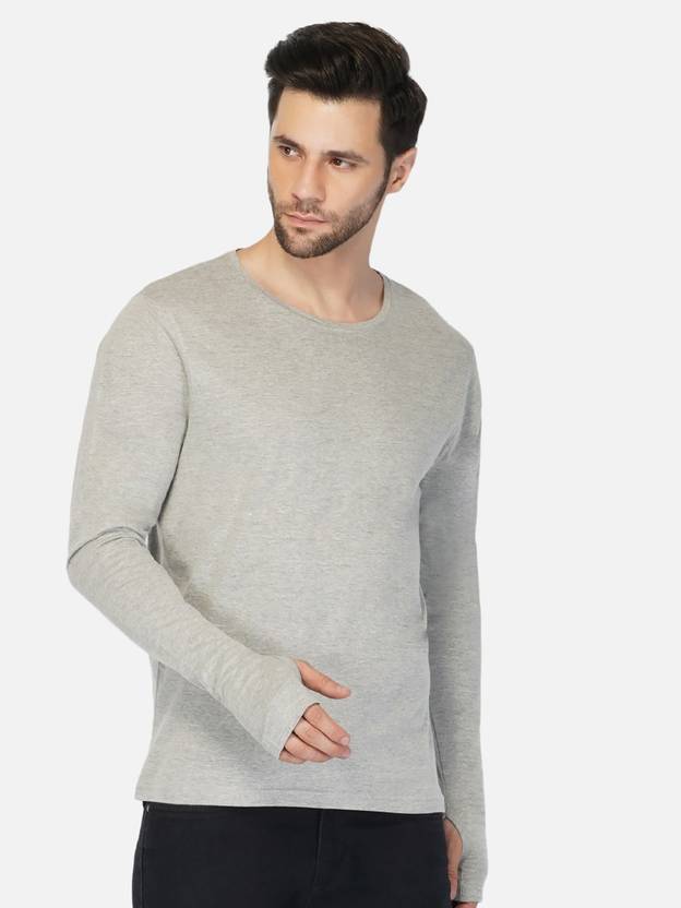 Ap'pulse Solid Men Round Neck Grey T-Shirt