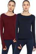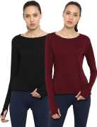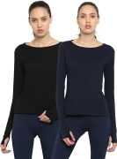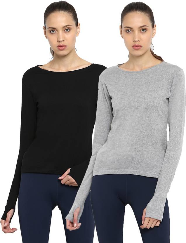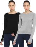 Ap'pulse Solid Women Round Neck Black, Grey T-Shirt