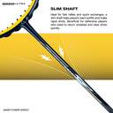 Find the perfect balance between power and control with the Nano Fusion Speed 9000 Ultra. Featuring an ultra slim nano graphite shaft and a head heavy frame made of Japanese graphite, this racket delivers a tension of 33 LBS and weighs only 81gms. Its sleek design and premium materials make it ideal for players looking to step up their game with a professional-grade racket.