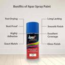 About Apar Spray Paint: APAR has a coating for every challenge. Its wide range of products can be used for both decorative and industrial purpose. APAR has been specialized in manufacturing of quality coatings that empower enthusiasts and professionals alike. APAR paints are excellent for general uses, its coat prevents the surface from rust. APAR paints are durable against heat. It’s Fast-drying, long lasting, vibrant, High Gloss and Coverage, highly adhesive on wood, plastics and metal surfaces. With shades and types of colors invented specifically to coat perfectly and refinishing. Available in various shades to suit different appliances, such as Car, Bike, Tractor, Cycle, Furniture, Fan, Refrigerator, Wooden or Steel Cabinet, Wall Art, Paintings etc.