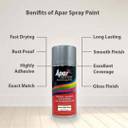 Apar paints are excellent for general uses, its coat durable against heat and prevents the metal surface from rust. It’s Fast-drying, long lasting, vibrant, High Gloss, Excellent Coverage, Corrosion Resistance, highly adhesive on wood, plastics and metal surfaces, With shades and types of colors invented specifically to coat perfectly and refinishing.