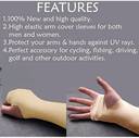 Professional grade high performance material is used to make ARMSLEEVES. Armsleeve consist of stretchy 89% polyester 11% spandex blend material., UNISEX DESIGN :- The Humanized Thumb Hole Design, Both Hand Back And Arm Can Be Free From Insolation. Its cover full hand or arms, SUN BURN PROTECTION :- Ultimate UV protection protect for your arms from aging, sun-burn more than arm-cooling. Effectively Resist Ultraviolet Radiation, Soft & Comfortable, Sweat Absorbent & Breathable, ANTI ITCHING :- Anti-odor and anti-itch material - wicks moisture away from the skin, HIGH PERFORMANCE :- Fast dehydration and quick-drying. Keeping you warm in cold temperatures and keeping it cool in hot temperatures. Suitable for all outdoor and indoor activities, even work spaces. 99% UV rays protection and cooling ability for Outdoors Use like Running, Basketball, Tennis, Cycling, Biking ,Football, Soccer, Biking and other Driving Activities