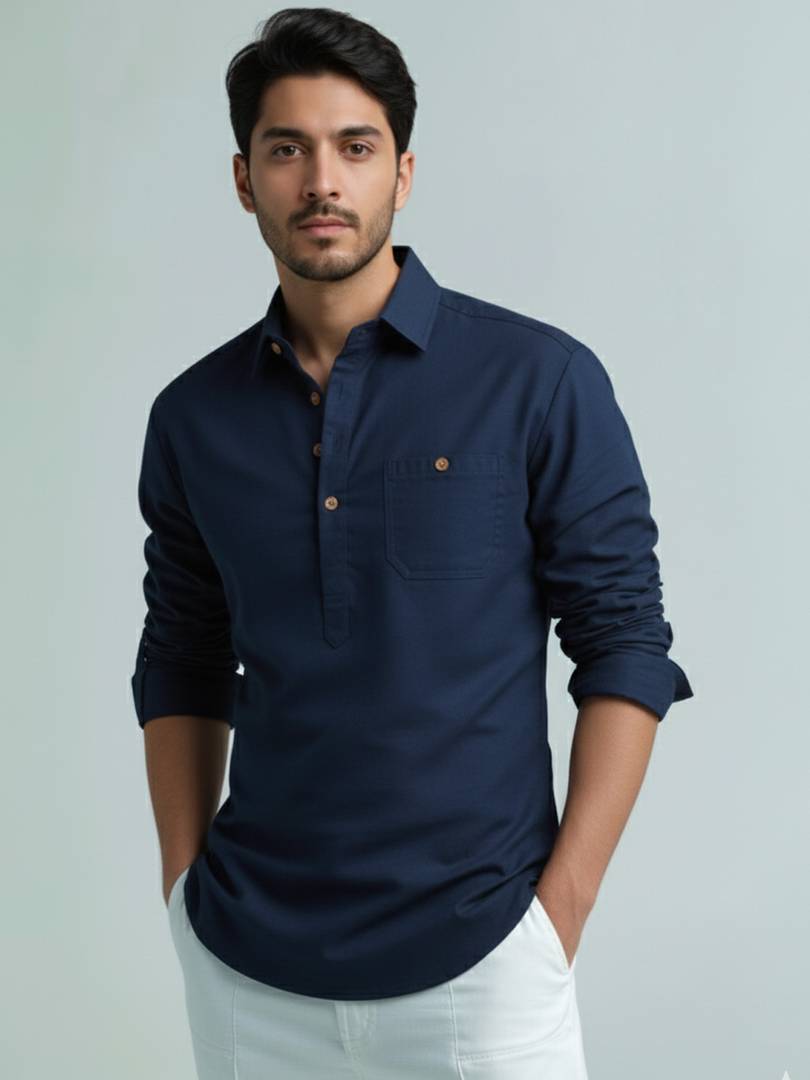 Upgrade your ethnic wardrobe with this men’s short kurta, crafted from premium breathable fabric for all-day comfort.