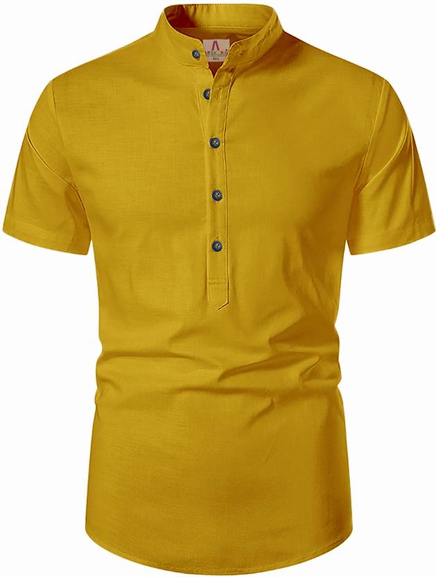 Apektra Men Solid Pure Cotton A-line Kurta (Yellow)