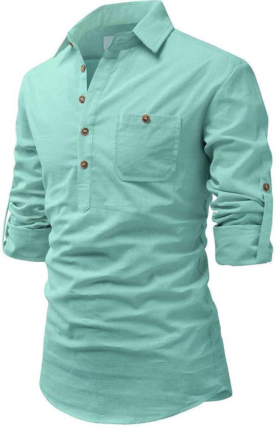 Men Solid Pure Cotton Straight Kurta (Light Green)