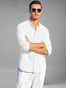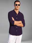 Men Slim Fit Solid Mandarin Collar Casual Shirt