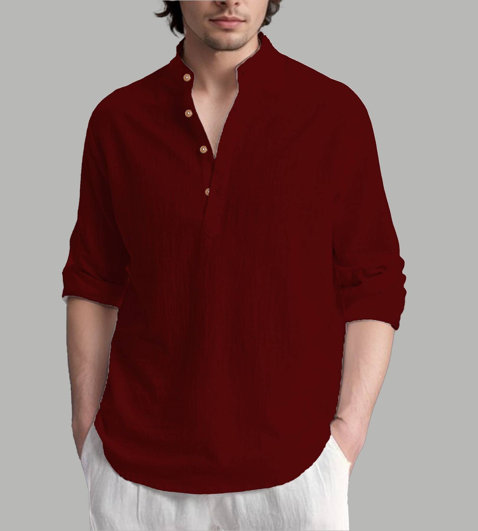 This pure cotton beige short kurta is perfect for men who value style and comfort. Its versatile design makes it ideal for any occasion—festivals, parties, or casual outings. Product Details ?? ????? Gender: Men ?? Pattern: Solid ?? Design Type: Plain ?? Closure: Button ?? Sleeve: Full Sleeve (Roll-Up Option) ?? Waist Rise: Mid-Rise ?? Collar: Mandarin/Chinese ?? Hemline: Curved ?? Fabric: Pure Cotton ?? Product Length: Short ?? Pack of: 1 Material & Care ?? Fabric: 100% Cotton Wash: Suitable for hand wash and machine wash. How to Style ?? Pair it with dark-wash denim or linen trousers for a casual look. Dress it up with a pair of churidar or slim-fit pants for festive occasions. Add leather sandals or loafers and a wristwatch for a classy finish. Roll up the sleeves for a relaxed vibe during daytime events. This short kurta seamlessly blends traditional elegance with modern styling, making it a wardrobe essential for every man! ??