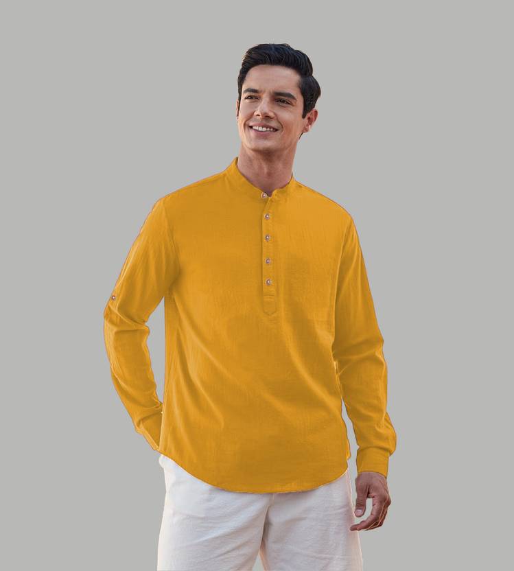Vida Loca Men Solid Cotton Blend Straight Kurta (Yellow)