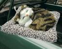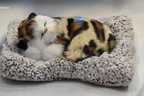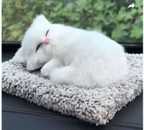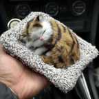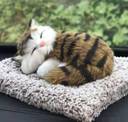 APEROL DESIGN Sleeping Cute Cat Toy for Car & Home with Activated Carbon & Meow Sound Decorative Showpiece - 5 cm (Fabric, Black, Brown)