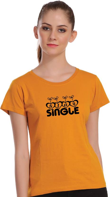Women Typography Round Neck Cotton Blend Yellow T-Shirt