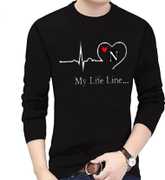 Get your wordrobe This Cool & Stylish Men's Typographic Printed Self Design My Life Line Alphabat Printed Tshirt from the house of Aphe Fashion. This men tshirt made of soft and comfortable polyster strechable fabric. This Typography Printed Round Neck Long sleeve white t-shirt have same fabric neckline, sleeve opening & botton border T-shirt | if you buy this product please check the given size chart and purchase perfect fit for you. Men's Cotton Round Neck Half Sleeve Regular Fit T shirt for Men & Boys, my life line printed men tshirt, alphabet printed tshirt for men and boys