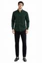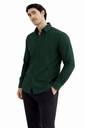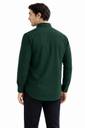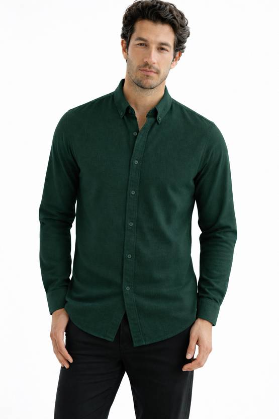 This men's dark green long-sleeved shirt features a classic button-down collar and a single patch pocket on the left chest. Made from a soft, possibly brushed cotton or flannel-like fabric, it offers a comfortable feel. The shirt has a regular fit and a curved hem, making it versatile for various casual occasions. It can be styled with jeans, chinos, or casual trousers for a relaxed yet put-together look.