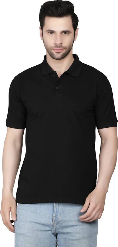 Men Solid Polo Neck Pure Cotton Black T-Shirt