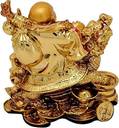 APNA KANHA Laughing Buddha Sitting On Dragon blessing Good Luck Decorative Showpiece - 8 cm (Brass, Gold)
