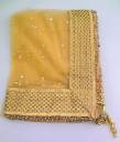 Heavy Border Self Design Net Lehanga Golden Color Dupatta For Women (57571)