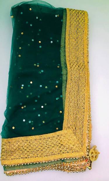 Heavy Border Self Design Net Lehanga Dark Green Color Dupatta For Women (57571)