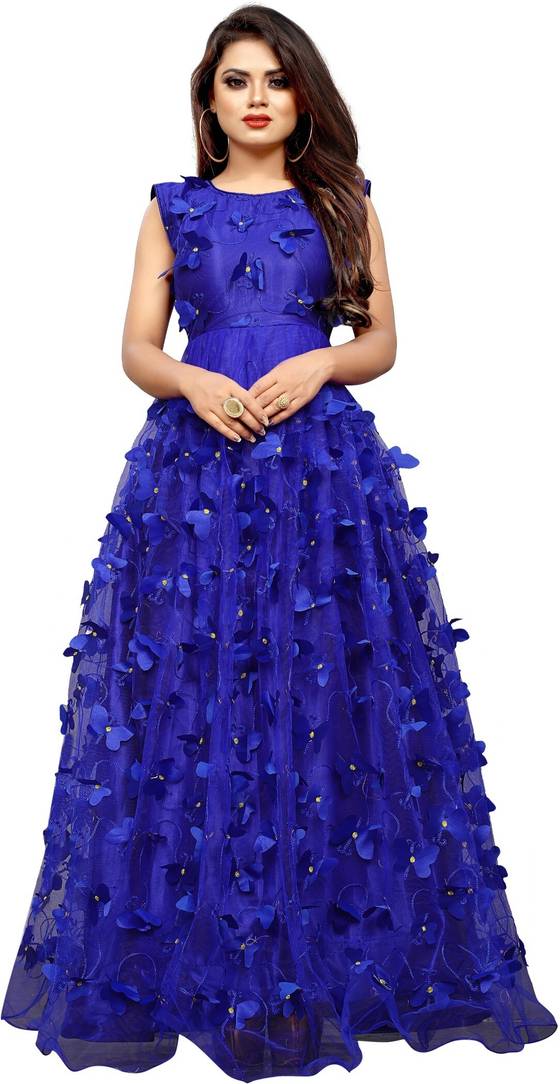 This Gown is Crafted with Butterfly over Net Fabric Having Embroidery Work on it. Gown is Comes With Inner Attached. Gown Color Royal Blue, Gown Length is 56 Inch. It has Sleeveless Gown. Gown is Semi-Stitched which can be fitted up to 42 inch Bust Size. Gown is Emblished with Fancy Butterfly. Dry Clean Or Normal Hand Wash. Product Color May Slightly Variation Due To Photographic Lighting Or Your Screen Settings And Other Accessories Are Only Modelling Purpose.