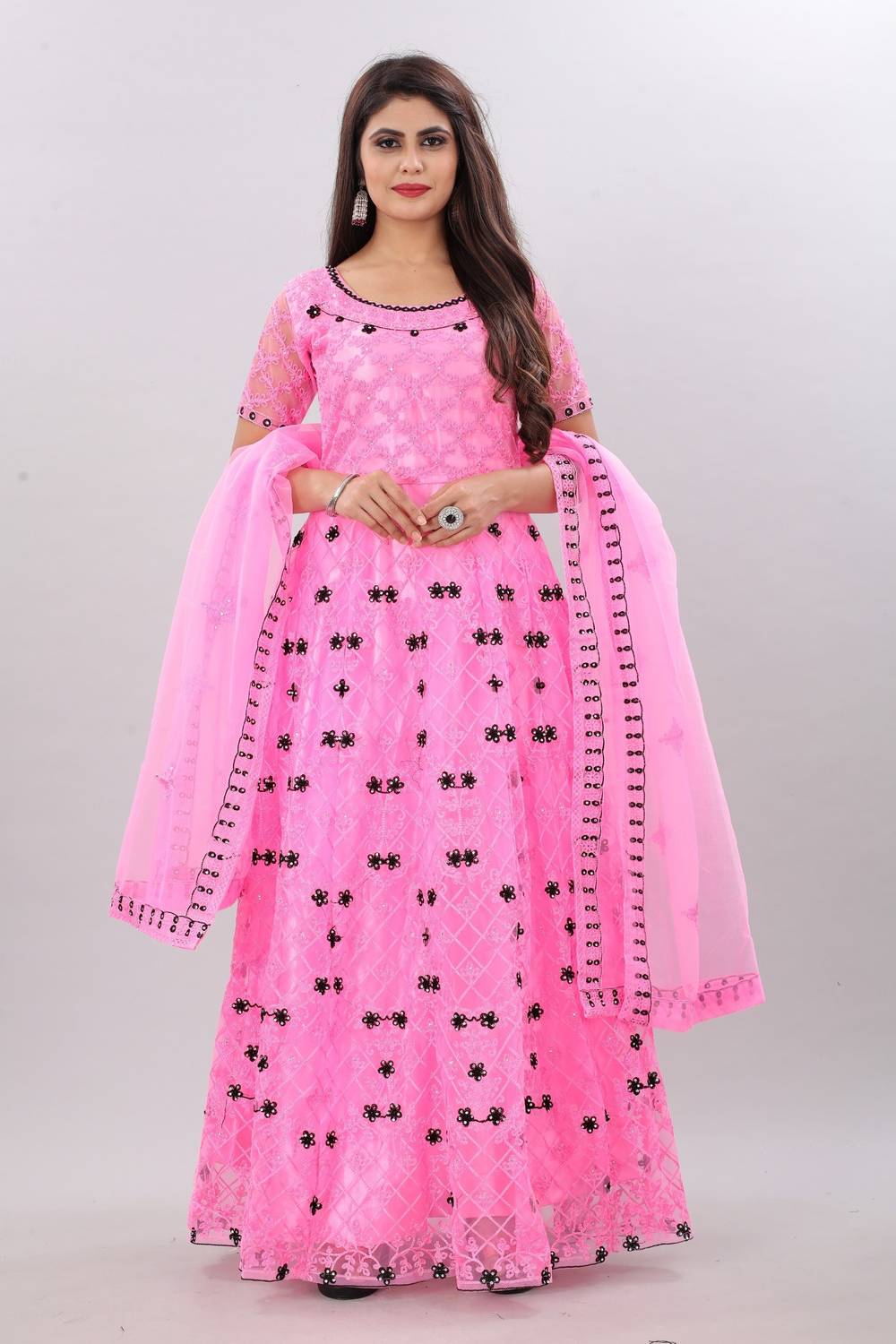 Embroidered Net Semi Stitched Flared/A-line Gown (Pink)