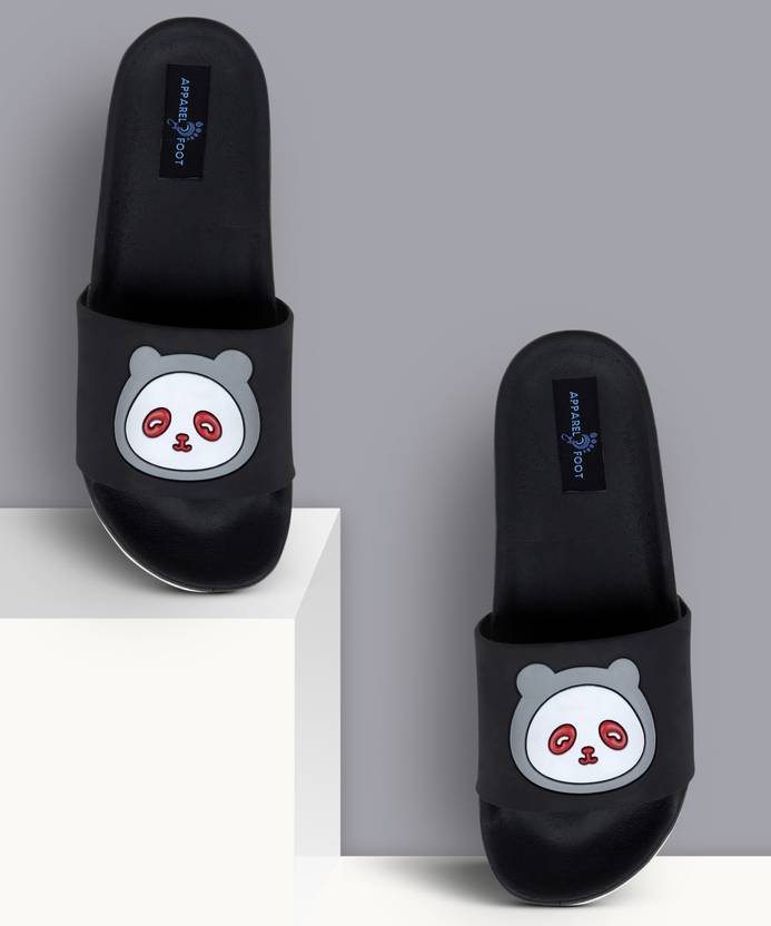 Apparel4Foot Women Flip flops for girls women Panda Printed Slippers| Women Home Slides| Girls Casual Chappals| Girls Footwear| Perfect Flipflops For Daily Wear| Walking Slippers for girls women Slides (Black, White , 8)