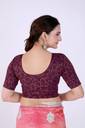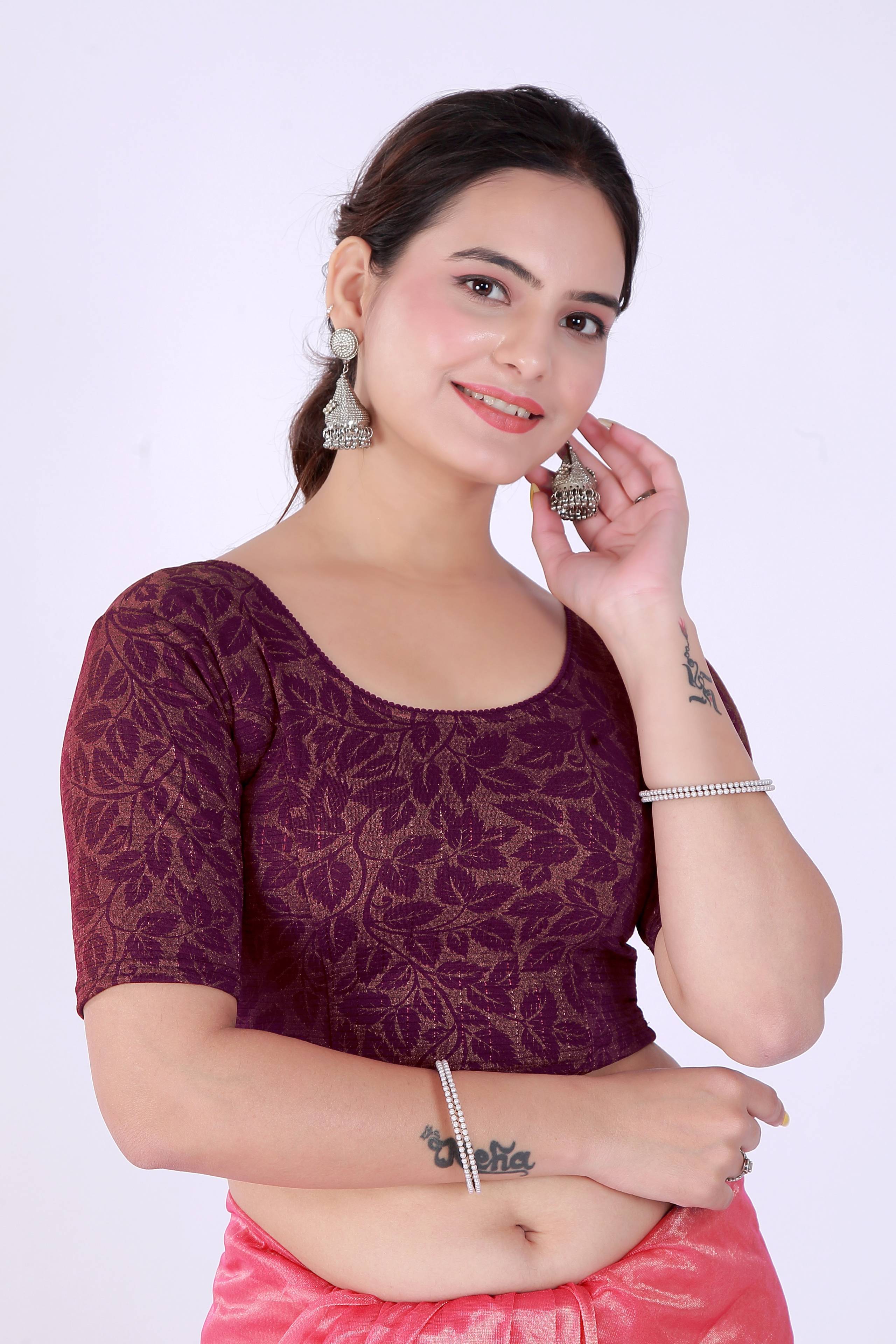 Fabric - Stretchable Leaves self-jacquard lycra. This Blouse can be matched with any color of saree or Lehenga. The stretchable fabric fits every body type perfectly. Easy to wear. Can expect minor color variation due to various reasons like screen brightness, screen resolution and viewing angle.