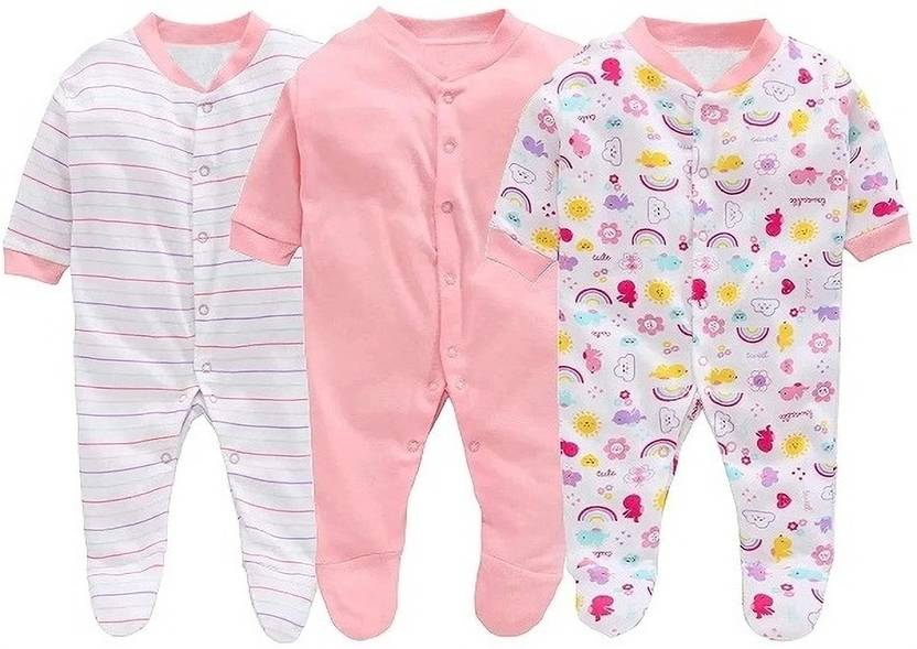 Romper For Baby Boys & Baby Girls Printed Cotton Blend (Multicolor, Pack of 3)