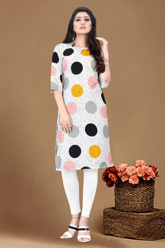 Women Printed Crepe A-line Kurta (White)