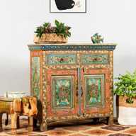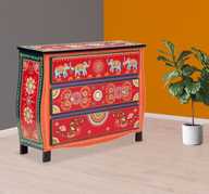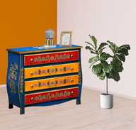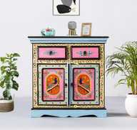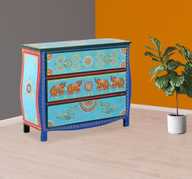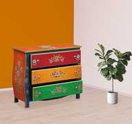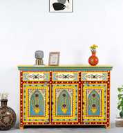 APRODZ Filke Wooden Handpainted Sideboard Solid Wood Free Standing Chest of Drawers (Finish Color - Multicolor7, Pre-assembled)