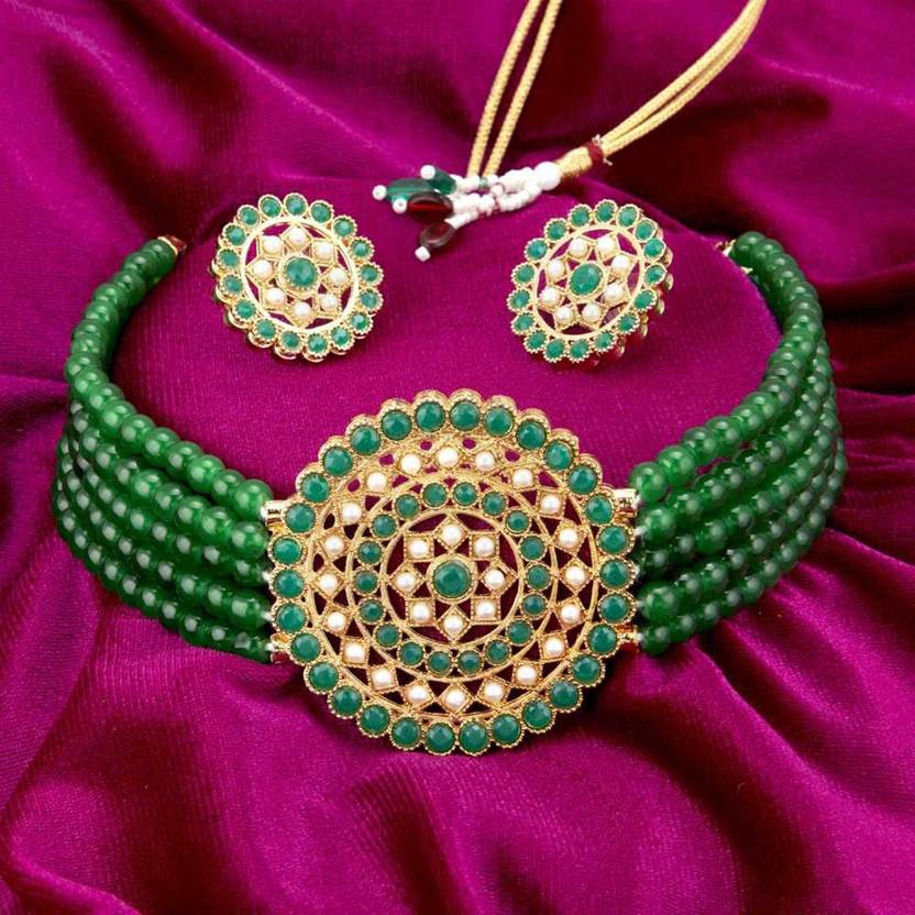 Alloy Gold-plated Green Jewel Set (Pack of 1)