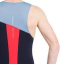 The neoprene suit provides buoyancy, an asset for the swim leg. Good to know: The French Triathlon Federation forbids isothermal swimsuits when the water temperature is above 24°C and makes it compulsory when the temperature goes under 16°C. Between 16 and 24°C, it's up to you.,With or without underwear? : We recommend you wear a sports bra for good chest support, however we encourage you not to wear briefs or boxer shorts to avoid any unnecessary chafing. Quick drying : The trisuit material dries quickly so you don't stay wet while you cycle!,Sitting comfort : The flexible perforated foam does not get waterlogged and is ideal for cycling.,Moisture management : The spine is covered in mesh at areas of profuse sweating.,Freedom of movement : The absence of sleeves fosters freedom of movement.,Breathability : The front zip goes down to the navel to allow ventilation.,Reduced chafing : All the yarns used for the seams are made of very soft foam. Swim, cycle and run with this trisuit! Designed by triathletes, this second skin follows the movements of your body during the 3 disciplines of your short-distance triathlons. Our team of passionate triathletes developed trisuit, an iconic staple for your first short-distance triathlons.