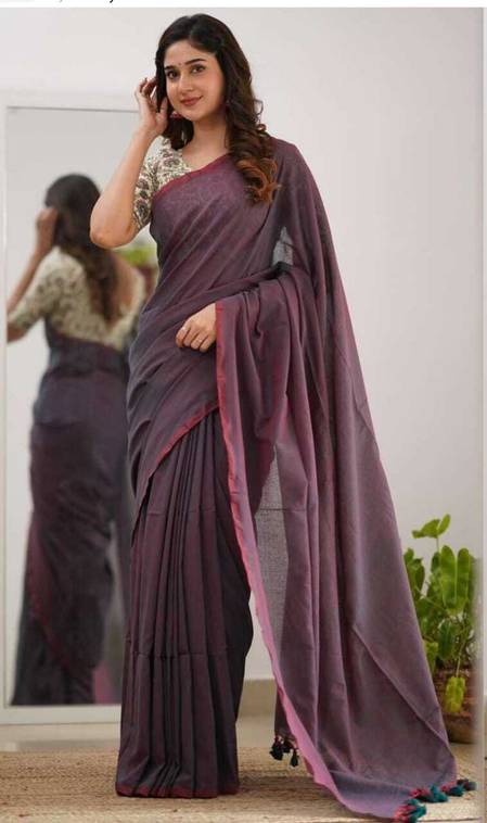 Solid/Plain Handloom Pure Cotton Saree (Purple)