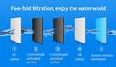 High purification capacity, automatic shut-off, compact design for easy installation, low noise operation, supports various water sources (municipal, borewell, tanker), and eco-friendly with low power consumption.