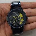 Introducing the AQUA BLISS watch, featuring a sleek black chain with a secure push-button lock and adjustable 22mm strap to fit various wrist sizes (small, medium, large). The standout feature is the spiral rotating wheel dial, reminiscent of a car rim, adding a touch of dynamic style to this timepiece. Built for durability and comfort, this watch is perfect for everyday wear.