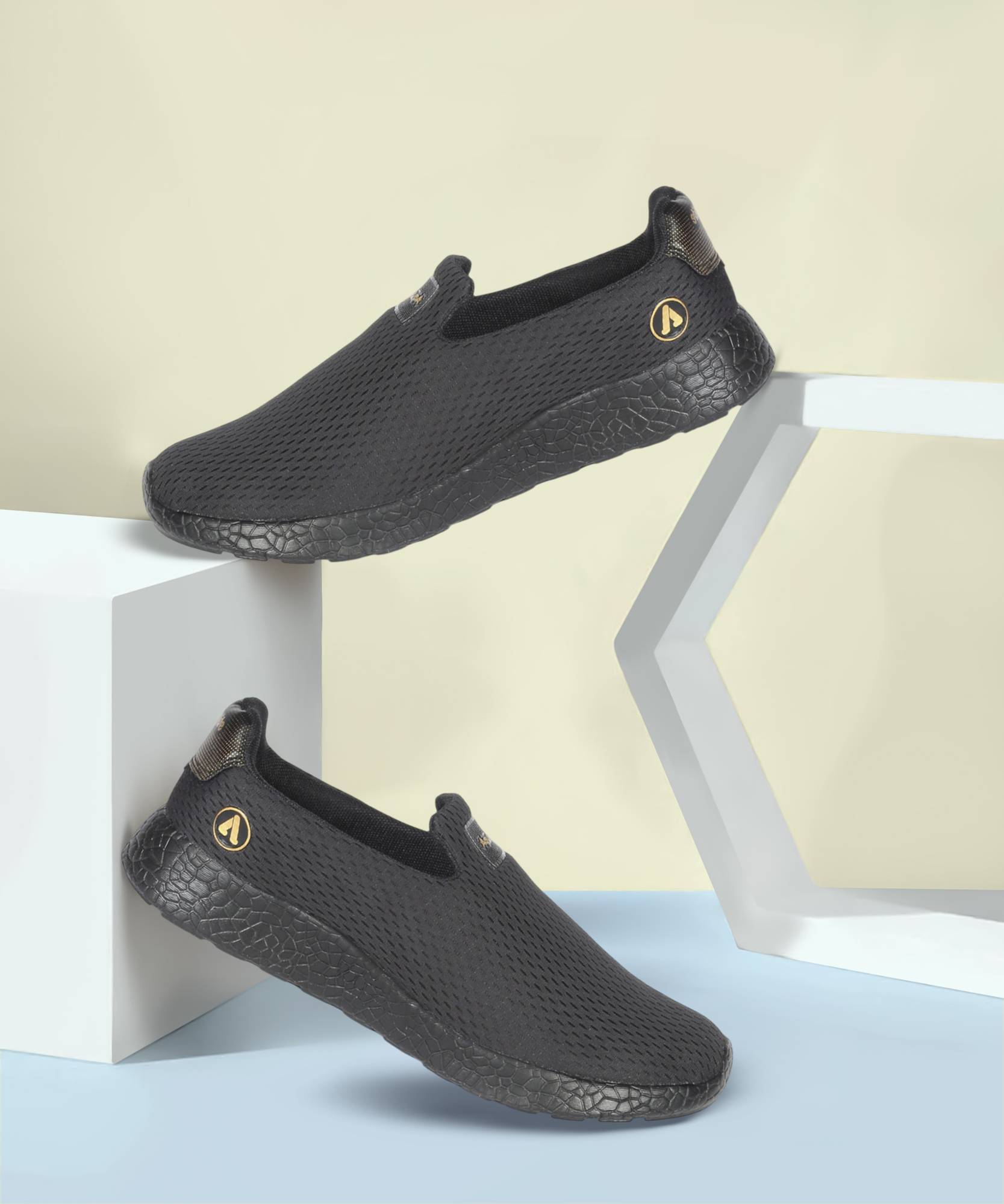 Aqualite LMX00107G Running Shoes For Men (Black, Gold , 7)