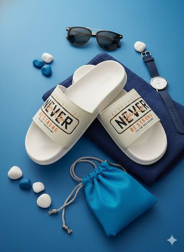 Men Slides (White, Blue , 8)