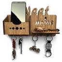 Product description Keep your entryway neat and tidy with this wall-mounted key holder. Featuring metal hooks for hanging keys, leashes and scarves, while a top slot creates storage for letters, sunglasses, wallets and cell phones, keeping the most important items for when you enter or exit your home. Key-hole brackets on the back of the rack allow you to easily mount this organizer on anyway in your home, office or bedroom. Not only can you keep keys and mail, you can easily transform this organizer to hang in your bedroom for hanging jewellery and other fashion accessories. With a brown finish and a natural wooden construct, this wall-mounted rack is perfect with all home and office decors.