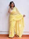 Aquiliq Printed Bollywood Linen Saree (Yellow)